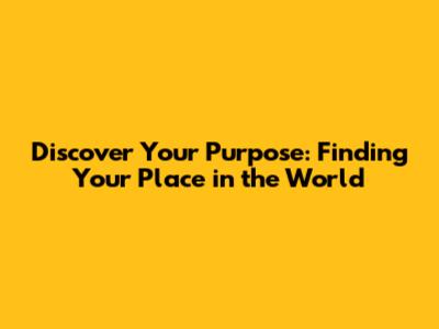 Discover Your Purpose: Finding Your Place In The World